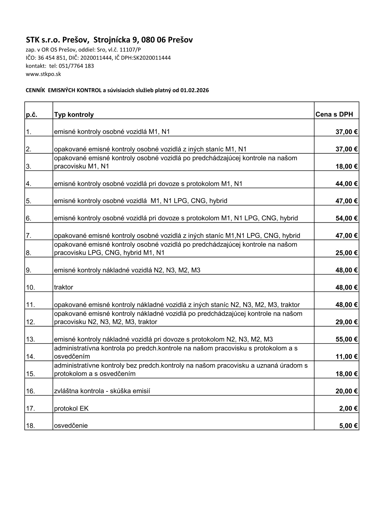 Pracovná doba STK: Po. - Pia. 6:30 - 16:00